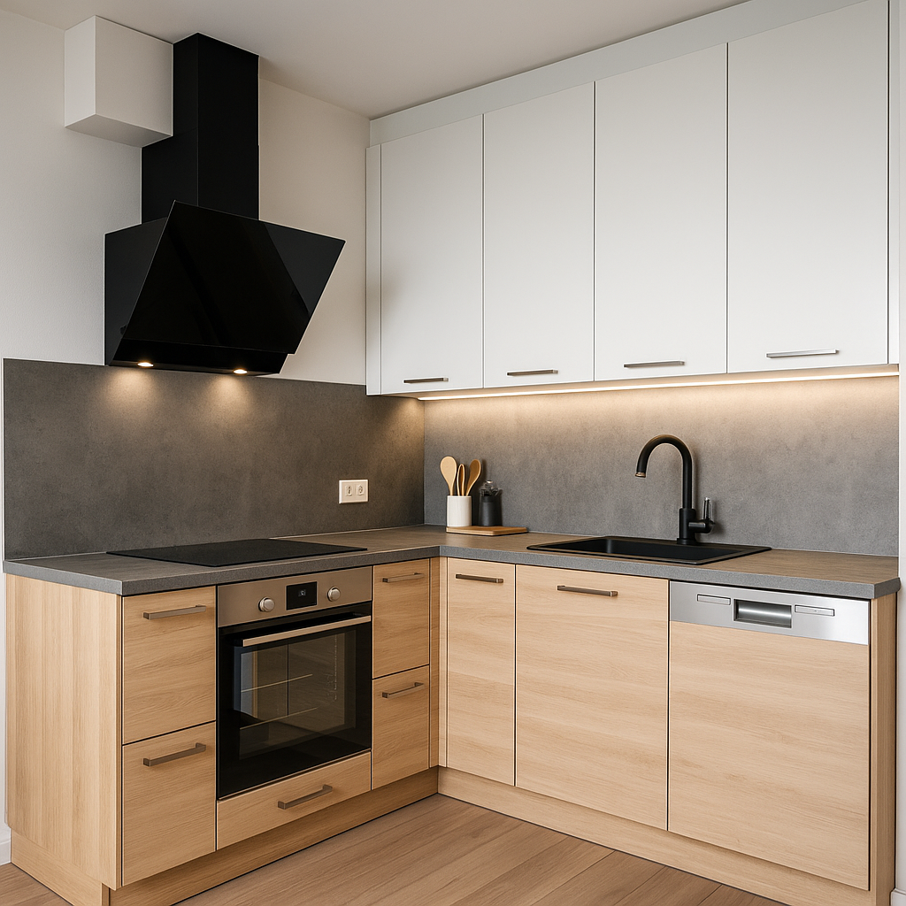 Klient wybiera fronty, blaty, uchwyty, systemy otwierania (np. tip-on, cichy domyk), okucia i inne akcesoria. Można też dopasować kolory i tekstury do stylu wnętrza – nowoczesnego, klasycznego, loftowego czy skandynawskiego.
