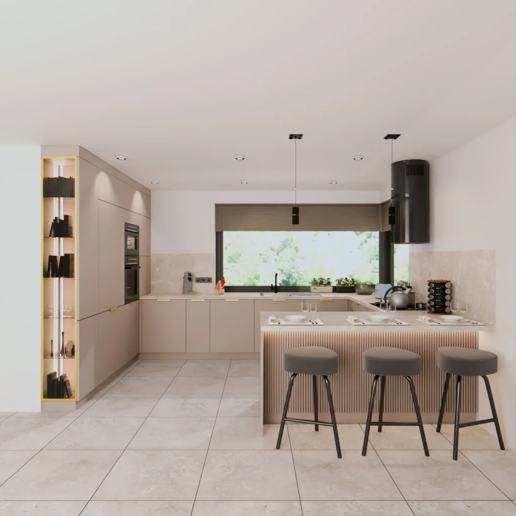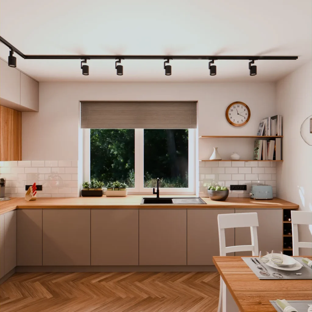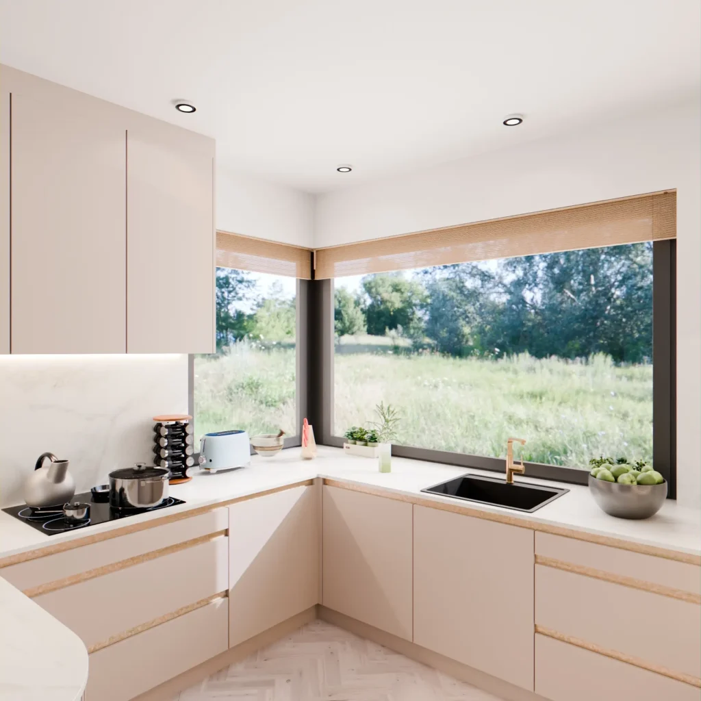 🔹 Kuchnie naturalne – drewniane elementy, jasne kolory, ekologiczne materiały.