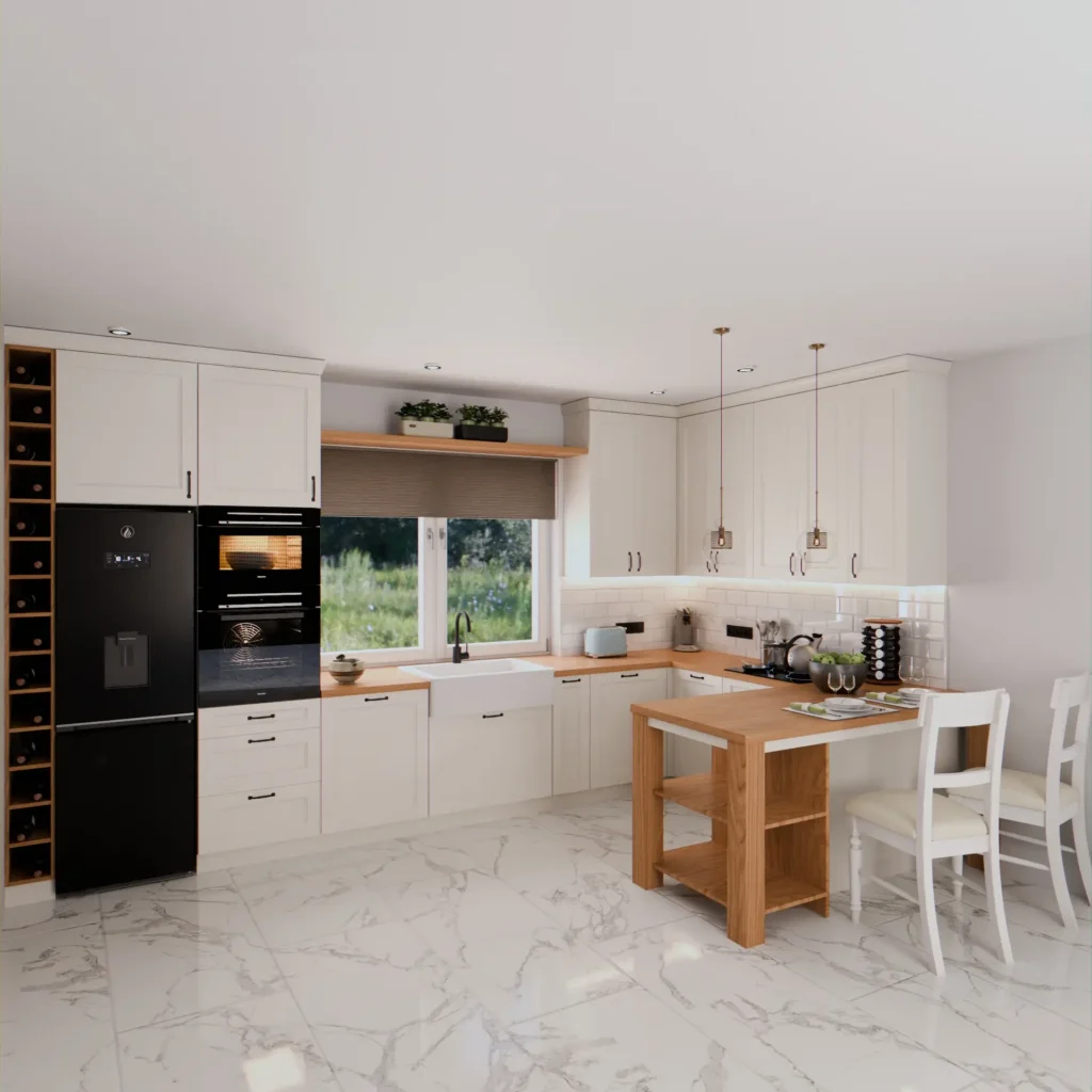 🔹 Kuchnie skandynawskie – jasne kolory, naturalne drewno, funkcjonalność