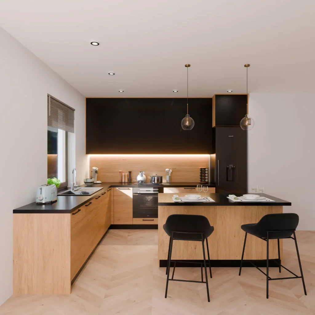 🔹 Kuchnie kompaktowe – idealne do mieszkań w nowoczesnych apartamentowcach.